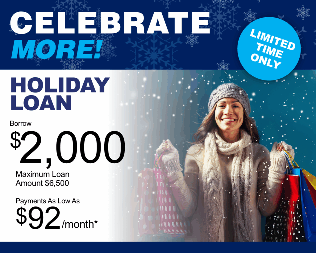 *Payment based on 9.24% Fixed Annual Percentage Rate for 24 months. Rate accurate as of 10-22-2025; subject to change. May be offered credit at higher rate and other terms; subject to credit approval. Rate featured is the lowest for the product. Maximum loan amount $6,500. Maximum term 24 months. Offer valid through 12/31/2025. Membership eligibility applies.