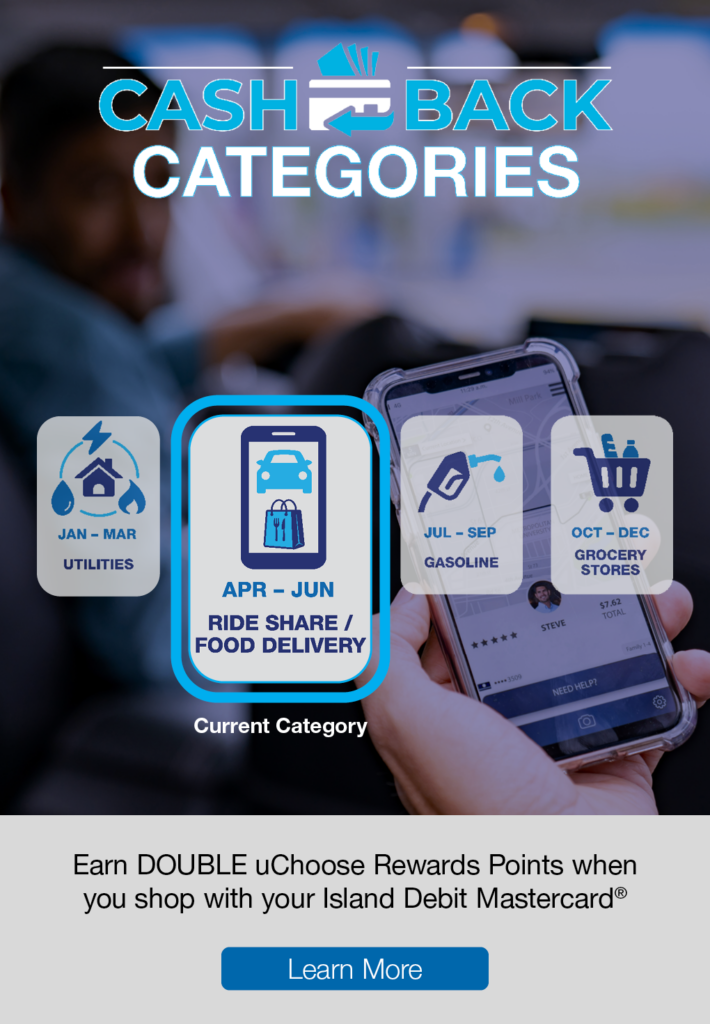 *APY= Annual Percentage Yield. Rates and terms accurate as of 04/08/2026 . All rates and terms are subject to change without notice. **The Business Essential Checking Account has no minimum balance, must maintain a monthly average balance of $2,500 in the account to obtain the disclosed annual percentage yield. ***The Business Premier Checking account is a “tiered-rate account,” which has several dividend rates that are applicable to specified balance levels. The minimum balance required to open and maintain this account is $5,000. You must maintain a monthly average balance of $5,000 in the account to obtain the disclosed annual percentage yield and avoid a $20.00 monthly maintenance fee. Disclaimer: Island Federal makes every effort to ensure that the information posted is current and accurate; however, we make no warranties of any kind, expressed or implied. Cardholders must enroll in uChoose Rewards to start earning points on purchases. Membership eligibility applies.