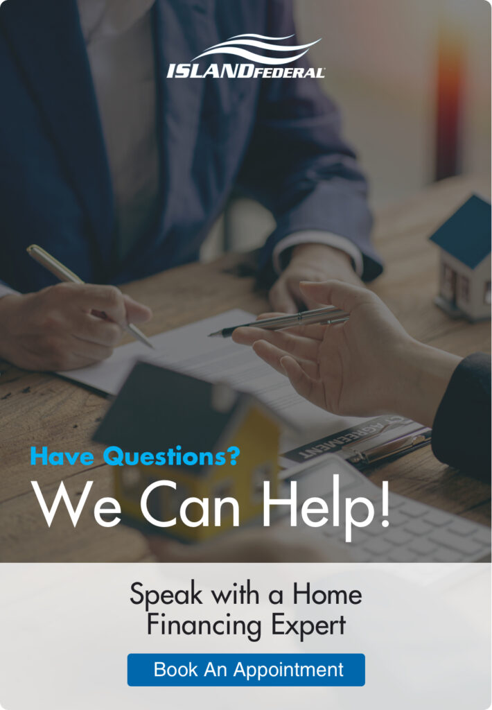 *APR=Annual Percentage Rate. Rates and terms accurate as of 10/21/2025 and subject to change without notice. Rate featured is the lowest for the product. Loan decision may be subject to property appraisal and/or title search. Applicants may be offered credit at a higher rate and/or different terms. Hazard insurance required on all loans. 1 No closing costs option only available for limits up to $500,000 for a primary residence located in Nassau or Suffolk County. Must maintain minimum balance requirements presented at closing for first 12 months for introductory rate and for 36 months to avoid payment of closing costs. 2 Variable rate; maximum rate of 16%. After introductory rate, APR varies based on prime rate plus a margin; margin disclosed at account opening. Current prime rate is 7.25%. Other terms and conditions apply. Disclaimer: Island Federal makes every effort to ensure that the information posted is current and accurate; however, we make no warranties of any kind, expressed or implied. Membership eligibility applies.